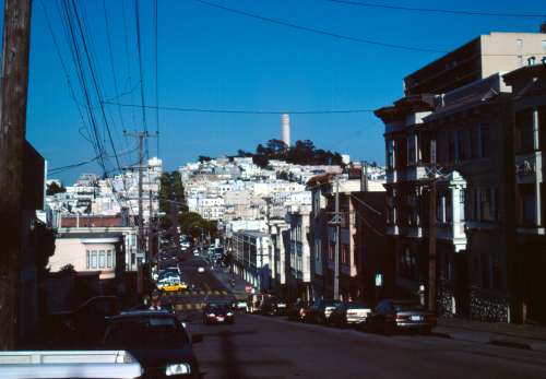 deco Coit Tower at the top of Telegraph Hill. The towers