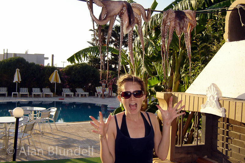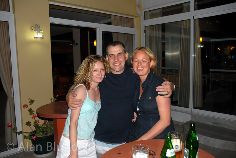 Kos, GreeceAfter quick and very comfortable flight with Mytravel, we descend into the Kos heat and the tail end of a heat wave for 14 nights at the Stavroula (which we find out later is the owners name). Because it was so late we'd dumped the cases and headed right out to the Sunset for a great meal (cheers Tommy) and spotted Nanda and Jack cycling back from Kos town, who we were going to surprise they next day (as we hadn't told them we were coming). Luckily enough they didn't spot us. The Stavroula was great value, quiet by day but a tad noisy by night, as its on the main road. Trade off is that is a very short walk to Dolphin Sq, the main landmark right in the middle of Kos town. The staff were always on hand and very friendly. Next day we got some push bikes sorted. Apparently there are more bikes on Kos than in Amsterdam.. Hmmm Upshot is we got transport sorted for €40 for the two of us for two weeks. First trip was to the supermarket for some supplies for 'bar Leesie'. We popped into the Nefeli where Nanda and Jack were staying to surprise them but there were at the beach so instead agreed to return that night, which happened to be Greek Night. Total surprise was not the word when we turned up later. It was really great to see everyone again and after meeting up with Hellen and Reinier, having far to much sambucca we cycled back (in a not so straight line) to the Stavroula. Next day we'd agreed to meet up with Nanda and Jack, as they'd be able to borrow a car, and go and explore the island. To do this with a hangover from hell was not my immediate motivation. I managed to avoid comatose and we all set of to visit Katrina, the Greek dancer, in Pili and had a 'on the house' coffee in her shop, then visited the old spring in the village before heading south to Kardemena for lunch.. or in my case lots of re-hydration therapy, shame as the food looked delicious. That afternoon we hit, the aptly named, sunny beach for a refreshing swim and restful sunbath. In the evening we all met in Hellas and said goodbye to Hellen and Reinier as it was their last night whilst doing my best to avoid the watermelon afters! We rounded the evening off in the Flamingo, not far from Dolphin Sq, with a coffee. Following day we still had the motor so making use of it we set of to Limnionas, a sheltered bay on the north side of the Island. I had a gorgeous Greek salad (which I came to eat virtually every day for lunch) at the Restaurant there (There's only one called surprisingly enough the Limnionas). Later in the afternoon we played scrabble with a Dutch set. I'm sure there were a lot more EE's and Zed's in it than a British set! We agreed that if we got stuck we could use Dutch and scouse words, each partner backing up the very dubious words that were getting put down! A very Bizarre but interesting game.. Modesty forbids telling you who won :> .Later that night we ate souvlaki at the Nefeli and had another late night! Next couple of days saw us spend time at Tingaki beach with Nada and Jack. Cycling the 9k to the beach (and 9k back) each day kept us fit, especially when the wind got up!. The beach there is well managed with Chrissy (having the best sun beds on the island for 3€s!) and has a very gentle slope into the sea which useful during our bat and ball sessions (Jack and I weren't allowed water pistols so we chose the next best toy!). We often went to the Scala restaurant for lunch (again Greek salad for me) and were served by Jeremy and the 'taka taka mam' man with the fabulous pastel green/gold eyes! Sometimes there was donought man (and later donought boy) selling huge.. wait for it donoughts for 2€ each. During this time we went to various places for our evening meals together, including Omerta, at the other end of town (great view but food just ok), Hellas (great traditional Greek food) and also at the Nefeli as their BBQ'd chicken and chips is the best on the planet! The last night we shared company with Nanda and Jack was at Hellas. Happy time on the food front as both Lisa and I have stuffed peppers and tomatoes. A few Mythos too! A sad night in a way as we were saying goodbye to our very good friends who been good enough to suffer us over the last week of their holiday and we were really going to miss them. We'd certainly miss Jack's dubious jokes (eg I kill everyone for a dollar.. but you are my friend... I will you for nothing). It had been great to spend a full week with them for a change, and to learn even more Dutch and to teach some scouse! A new language was formed Scutch. Nanda picked up our accent spookily really well and I'm sure she'll convince the locals if she ever visits Liverpool (her height may give the game away though :>). After a nightcap at the Nefeli it was back to our apartments with a look forward to a lie in! Next day and we headed into Kos town for some dosh and ended up sitting in a cafe discussing why folk rush their coffee with the waiter. We didn't think that half an hour was rushing but he suggested an hour minimum. Apparently the Italians were the worst offenders for rushing off after just a few minutes. Back at the hotel for some sun bathing and we got chatting to the party who were leaving that day, some of whom originally lived in Kirkby, small world! We also spotted many a solar panel whilst soaking up the rays, how do they work anyway?! Watching the baby swallows (The family apparently come back each year to nest under the eves of the bar) learning to fly too was relaxing, as was the drink in the Hamam original, Diagora St in the old town later that evening. The curry at the Pak, near Dolphin Sq later on was however mediocre. The following day was deemed Photo day. 1st stop was the Asklepieion, a hard slog on the bikes but worth the visit. For those of you who don't fancy the exercise there is a mini train which saves your legs. After lots of snaps taken, with everyone either getting in my way or hover behind me coping my shot (cheek!), it was back d