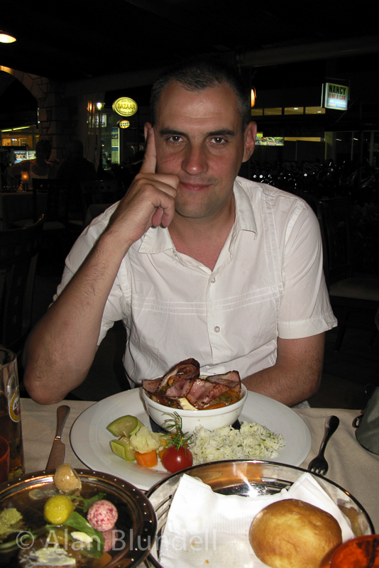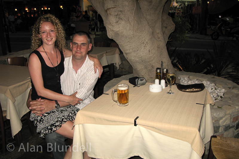 Tigaki - Kos, GreeceWell its been raining since last summer and the idea of a guaranteed week in the sun sounded so appealing! We decided to stay in Tigaki, only to save the pedal power required to get to the beach if we'd have stayed in Lambi, Kos. We stayed at the aptly named Mythos apartments for a week. The hotel itself turned out to be on the main street, but behind the restaurant, backing onto a field so it was nice and quiet, cept when the cows went off! moooo!. Even had a calf coming up to feed on the better grass outside the patio, cute. The apartments had great atmosphere, our room, No 4, was spotlessly clean and modern and the staff were all really friendly, helpful and made us feel very welcomed. It also had a free safe but the key was linked into the room keys, the fob of which was needed to keep the power on in the room. Hmmm not that good if you need to something out of the safe of a night so take a magnet with you if you go Flight was comfy, on a 767, but the landing was anything but soft!.. 'the wind had changed on approach' apparently.. result.. TV cowlings and overhead lockers opened and a few screams were heard! Still got to the Hotel in one piece around 12 in the night and after asking if we could get any food anywhere in the resort, was told that the bar would still be open for drinks (which was actually what I wanted all along!;>).. It would have been rude not to impose don’t you think.. Apart from one day to Kos on the bus, most of our time was spent down at the beach and in the restaurants in the evenings. Had a tasty stifado, steady, in the Meni restaurant, which came with home made bread and flavoured butters. Vassilis, at the front of the Mythos, was excellent too. We also enjoyed a meal at Spyros, steak for me and a Pork, leek and feta thingi! Went to a few of the bars too of course and even went to see the man with the snake and a stick to help Lisa over her mossi bites! An event free flight back to the storms after a rather relaxing time.. Slideshow