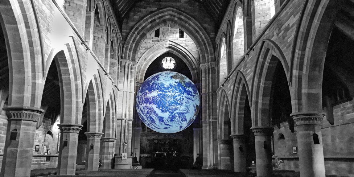 Previously being exhibited at the Liverpool Cathedral the World comes to Knowsley. “Gaia is a touring artwork by UK artist Luke Jerram. Measuring seven metres in diameter and created from 120dpi detailed NASA imagery of the Earth’s surface* the artwork provides the opportunity to see our planet, floating in three dimensions.”